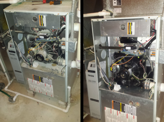 The two major components of a furnace that needs to be cleaned annually are the furnace blower and the AC Coils. When impacted with dirt or debris, your furnace system will run inefficiently and could lead to degraded performance. The proper way to clean a furnace blower is to ensure you are able to access the blower blades properly. The proper way to clean an AC coil is to ensure there is access to the top and bottom of the coil.